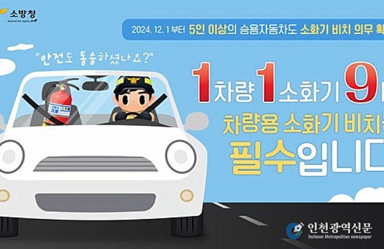 [인천광역신문] 박진 기자 | 천안서북소방서(서장 김종욱)는 차량 화재 발생 시 신속한 초기 대응을 위해 차량용 소화기 설치를 적극 당부했다.