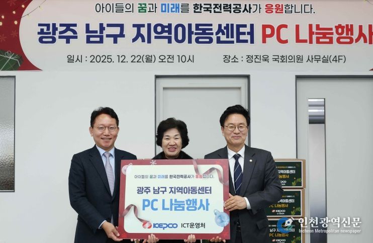 [인천광역신문] 박진 기자 | 한국전력이 12월 22일 광주 남구 지역아동센터를 대상으로 ‘PC 나눔행사’를 개최했다. 이번 행사는 지역아동센터의 디지털 교육 환경을 개선하고 자원의 효율적 활용을 통한 나눔 문화를 확산하기 위해 마련됐다.