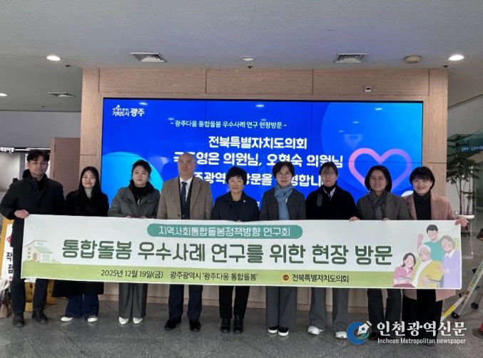 [인천광역신문] 박진 기자 | 전북특별자치도의회 ‘지역사회통합돌봄정책방향 연구회’(국주영은 대표의원)가 지난 18일 지역사회 통합돌봄 선도 모델로 평가받는 광주광역시 ‘광주다움 통합돌봄’ 현장을 방문해 사례 연구를 실시했다.