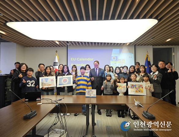[인천광역신문] 박진 기자 | 고성군은 12월 23일 화요일 오후 1시, 서울 중구 서울스퀘어 11층에 위치한 주한 유럽연합(EU) 대표부에서 열린 '2025년 주한 유럽연합 학생 달력 그림 공모전 시상식'에 수상 학생들을 인솔해 참석했다.