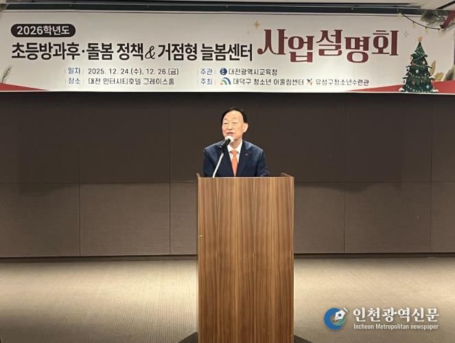 [인천광역신문] 박진 기자 | 대전시교육청은 12월 24일과 26일 양일간에 걸쳐 호텔 인터시티에서 대전 내 전체 초등학교장을 대상으로‘2026학년도 초등방과후·돌봄 정책 및 거점형 늘봄센터 사업설명회’를 개최했다고 밝혔다.
