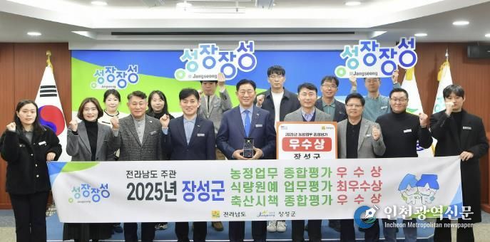[인천광역신문] 박진 기자 | 장성군이 최근 전라남도 농정업무 종합평가에서 종합 우수상을 수상했다. 식량·원예분야 최우수상, 농식품유통 우수상, 축산분야 우수상도 받았다.