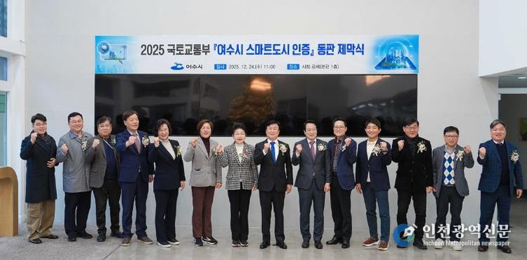 [인천광역신문] 박진 기자 | 여수시는 호남권 최초로 국토교통부 주관 ‘2025년 스마트도시 인증’에 선정되면서 지난 24일 시청 본관 1층 로비에서 동판 제막식을 개최했다.
