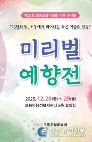 [인천광역신문] 박진 기자 | 밀양시 초동고을미술회는 26일부터 29일까지 초동면 행정복지센터 2층 회의실에서 제23회 ‘미리벌 예향(藝鄕)전’을 개최한다.