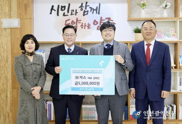 [인천광역신문] 박진 기자 | 양주시에 소재한 전자저울 전문기업인 ㈜카스가 지역 발전을 위해 양주시에 고향사랑기부금 500만 원을 기탁했다.