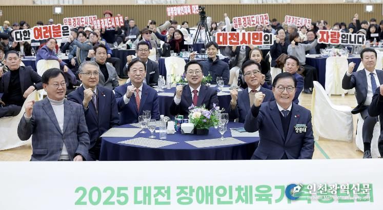 [인천광역신문] 박진 기자 | 대전시의회 조원휘 의장은 26일 유성구 덕명동 장애인체육센터에서 열린 ‘2025년 대전장애인체육가족 송년회’에 참석해 수상자들을 축하하고, 장애인체육 저변 확대를 위한 정책적 관심과 지원을 약속했다.