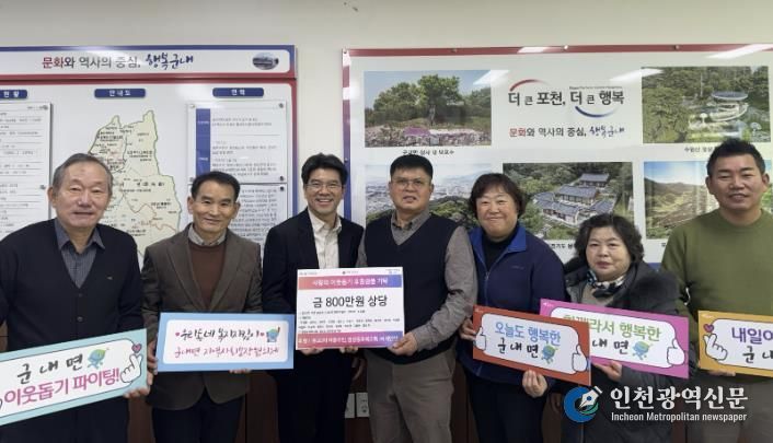 [인천광역신문] 박진 기자 | 포천시 군내면 행정복지센터는 지난 26일 유교2리 마을주민과 청량동축복교회, 김상호 ㈜지앤인 대표가 지역 내 어려운 이웃을 돕기 위한 성금과 쌀을 사회복지공동모금회를 통해 기탁했다고 밝혔다.