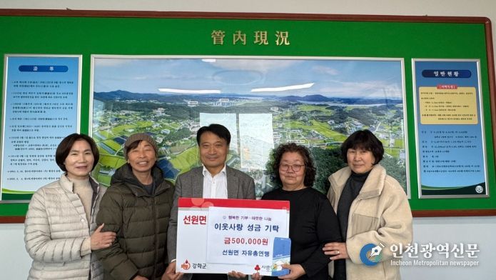 [인천광역신문] 박진 기자 | 강화군 선원면은 지난 26일, 한국자유총연맹 선원면분회(회장 이수정)에서 관내 어려운 이웃을 돕기 위한 성금 50만 원을 기탁했다고 밝혔다.