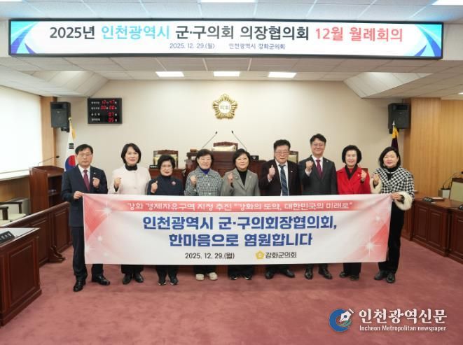 [인천광역신문] 박진 기자 | 강화군의회는 29일 강화군에서 인천광역시 군·구의회 의장협의회 12월 월례회의를 개최하고 ‘강화 경제자유규역 지정’에 대한 공감대를 함께 나눴다고 밝혔다.