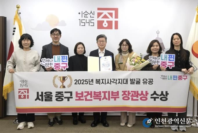 [인천광역신문] 박진 기자 | 서울 중구가 보건복지부 주관 ‘2025년 사회보장정보시스템 구축 및 운영평가’에서 ‘복지사각지대 발굴 분야’ 우수기관으로 선정돼 보건복지부 장관상을 수상했다.