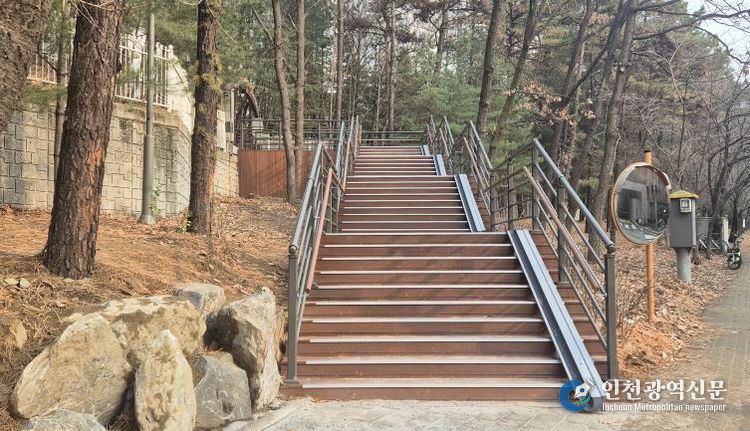 구는 기존 계단을 철거한 뒤 폭 3m, 길이 28m의 계단을 설치했다. 계단에 안전 손잡이와 자전거 경사로 등 시설도 새로 만들었다.
