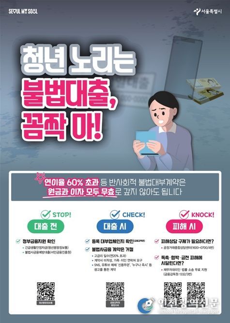 아울러 서울시는 불법사금융에 대한 사회적 경각심을 높이기 위해 청년층 이용도가 높은 카카오톡 배너광고, 유튜버 협업 숏폼 영상 등 온라인 채널을 중심으로 집중 홍보를 전개했다. 이를 통해 불법사금융 구별법, 피해 예방·신고 절차, 무료 법률지원 제도, 청년 맞춤 금융지원 정보를 자연스럽게 접할 수 있도록 했다.