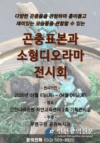 [인천광역신문] 박진 기자 | 부평구는 인천나비공원에서 오는 6일부터 4월 6일까지 ‘곤충표본과 소형디오라마 전시회’를 개최한다고 밝혔다.
