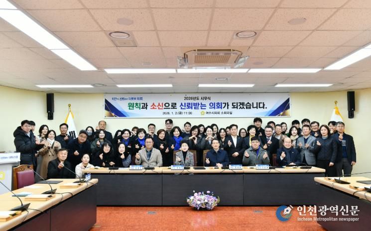 [인천광역신문] 박진 기자 | 여수시의회는 1월 2일 의회 소회의실에서 2026년 시무식을 개최하고, 본격적인 의정활동에 앞서 반부패·청렴서약을 실시하며 새해 의정 운영의 출발을 알렸다.