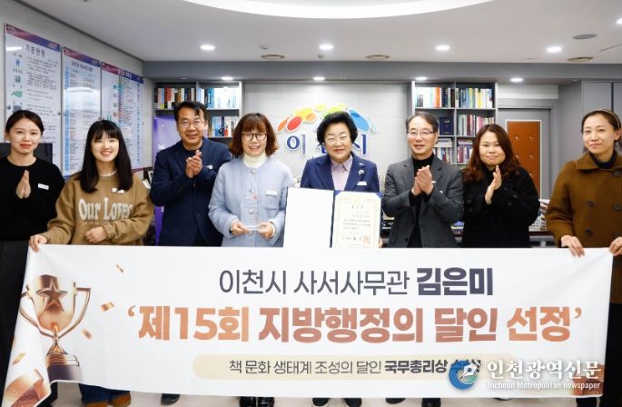 [인천광역신문] 박진 기자 | 이천시 도서관 김은미 사서사무관이 사서직 공무원 최초로 ‘제15회 지방행정의 달인’에 선정돼 국무총리상을 수상했다. 시상식은 2025년 12월 31일 서울 정부종합청사에서 열렸으며, 대통령상 1명, 국무총리상 1명, 행정안전부장관상 6명 등 총 8명이 수상자로 선정됐다.