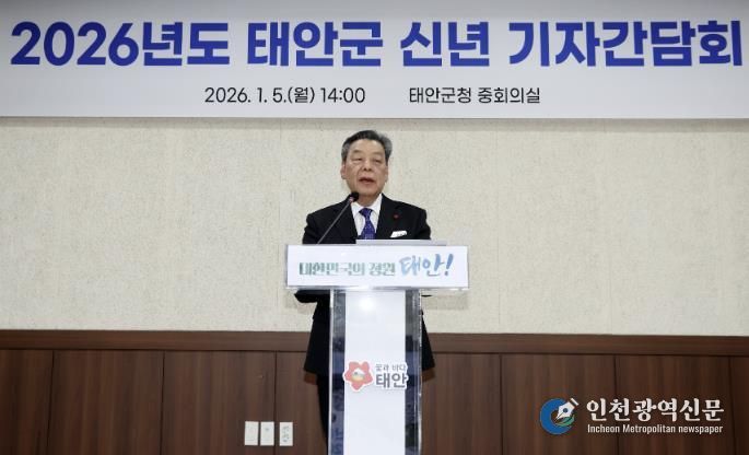 [인천광역신문] 박진 기자 | 가세로 태안군수가 5일 군청 중회의실에서 병오년(丙午年) 새해 신년 기자회견을 갖고, 민선 8기 군정의 마무리와 미래 도약을 함께 준비하는 2026년 군정 운영 방향을 발표했다.
