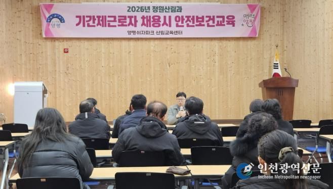 [인천광역신문] 박진 기자 | 양평군은 지난 7일 양평 쉬자파크 산림교육센터에서 산림 현장에서 근무하는 기간제근로자 12명을 대상으로 안전보건교육을 실시했다.