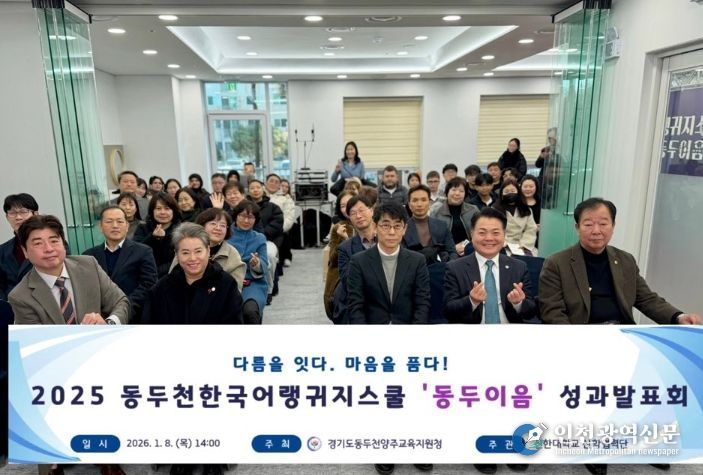 [인천광역신문] 박진 기자 | 동두천양주교육지원청은 1월 8일, 동두천 싸이언스타워에서 ‘동두이음 성과발표회’를 개최하고, 2025년 한 해 동안 운영한 동두천한국어랭귀지스쿨의 교육성과를 지역사회와 공유했다.