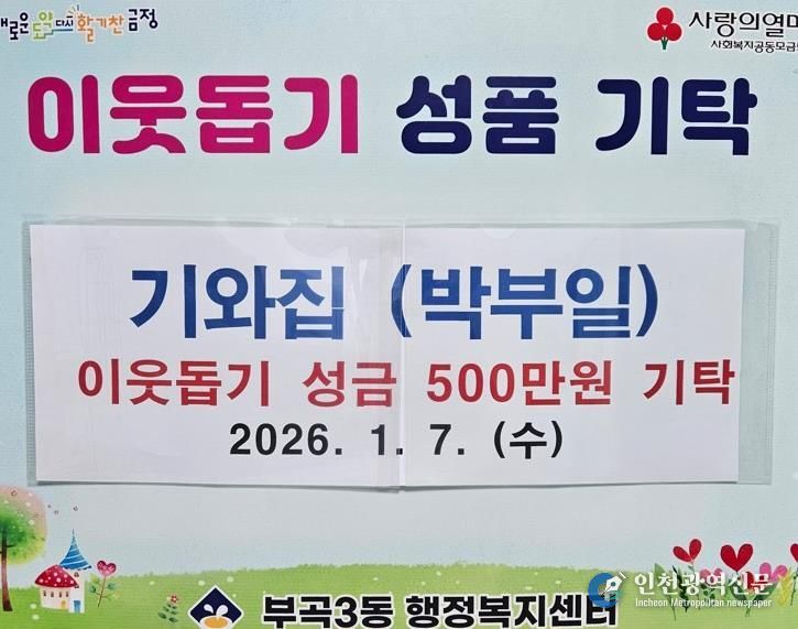 [인천광역신문] 박진 기자 | 부산시 금정구 부곡3동은 지난 7일 오륜동 기와집에서 어려운 이웃을 위해 성금 500만원을 기탁했다고 밝혔다.