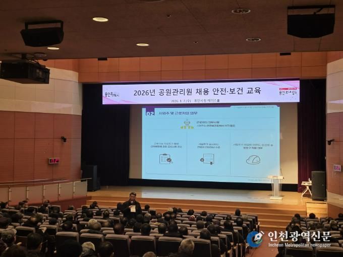 [인천광역신문] 박진 기자 | 용인특례시는 올해 새롭게 채용한 공원관리원을 대상으로 7일 시청 에이스홀에서 안전·보건교육을 진행했다고 9일 밝혔다.