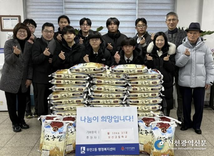 [인천광역신문] 박진 기자 | 지난 1월 8일, 유신고등학교 학생회에서는 따뜻한 마음을 담아 백미 10Kg 37포를 수원시 팔달구 우만2동에 전달했다고 밝혔다.
