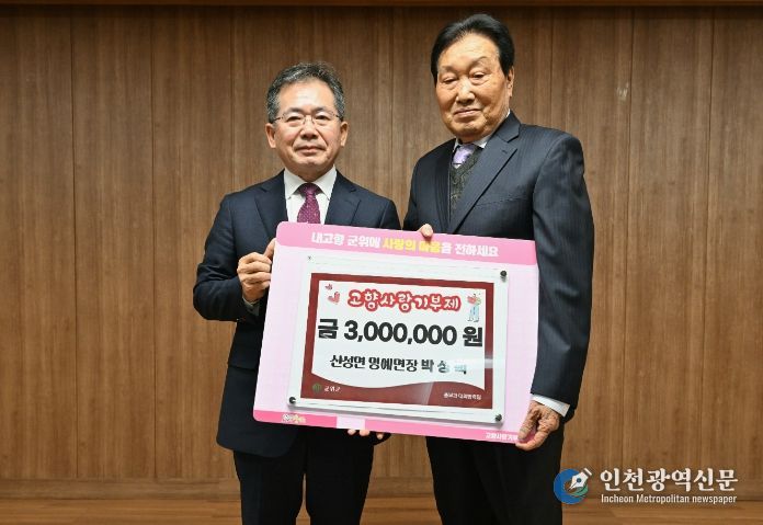 박 명예면장은 이날 위촉식 자리에서 고향 사랑의 마음을 담은 기부금 300만원을 전달해 현장을 더욱 훈훈하게 만들었다. 이는 명예면장이라는 직함을 넘어, 고향을 향한 변함없는 애정을 실천으로 직접 증명한 것이기에 주민들에게 더욱 깊은 울림을 주었다