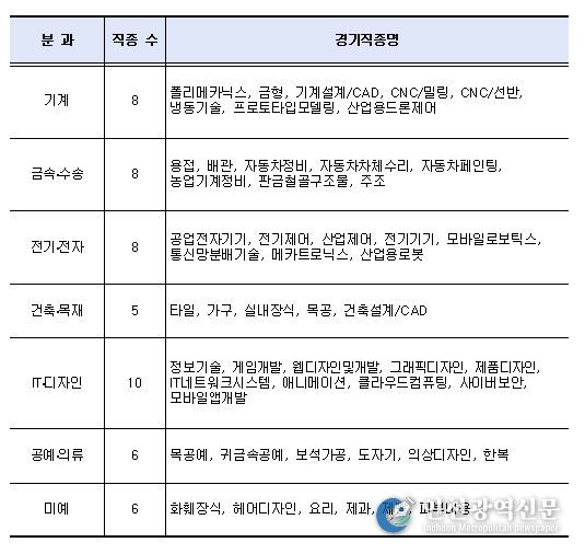 ○ 금형, 주조 등 서울시 제조업 경쟁력을 뒷받침해 온 뿌리기술 직종과 더불어 산업용드론제어, 메카트로닉스 등 미래산업 핵심 직종을 함께 구성해 총 7개 분과 51개 직종에서 참가 신청을 받는다.