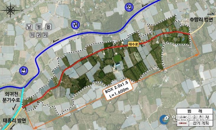 특히, 의귀1 재해위험개선지구 정비사업은 집중호우시 우수가 의귀천으로 유입되지 못해 태수로 주변 주거지와 농경지 저지대의 침수피해가 빈번하게 발생하는 곳으로 2028년까지 준공을 목표로 하고 있으며, 사업완료 시 263ha의 침수위험지역이 해소될 전망이다.