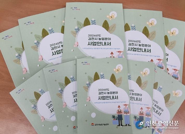 [인천광역신문] 박진 기자 | 김천시는 2026년도 김천시농업기술센터에서 추진하는 농업분야 지원사업의 사업내용과 신청정보를 담은 ‘2026년도 김천시 농업분야 사업안내서’를 제작하여 읍면동 행정복지센터 및 지역농협에 배포했다고 12일 밝혔다.