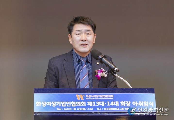 [인천광역신문] 박진 기자 | 화성특례시의회는 12일 화성상공회의소 4층 컨벤션홀에서 열린 '2026년 화성시 여성기업인협의회 이취임식'에 참석해 여성 기업인의 성과를 격려하고 새로운 출발을 축하했다.