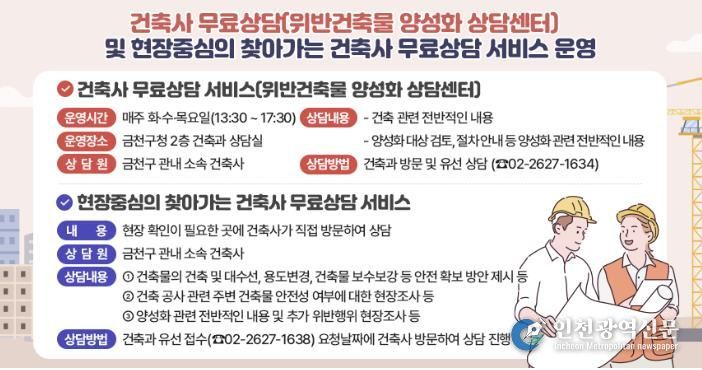 [인천광역신문] 박진 기자 | 금천구는 건축민원 전문상담 서비스를 운영하고 있다고 밝혔다.