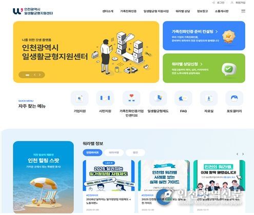 [인천광역신문] 박진 기자 | (재)인천여성가족재단 인천일생활균형지원센터는 일생활균형지원사업의 본격적인 추진을 위하여 센터 홈페이지를 지난 12월에 구축·완료하고, 공식 오픈했다.