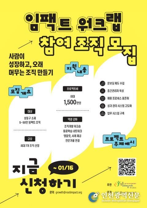 [인천광역신문] 박진 기자 | 서울 성동구가 출자하여 설립한 성동미래일자리주식회사에서 사단법인 루트임팩트와 손잡고 지역사회 임팩트 조직의 역량 강화를 지원하는 '임팩트 워크랩' 사업의 후원사로 참여한다고 밝혔다.