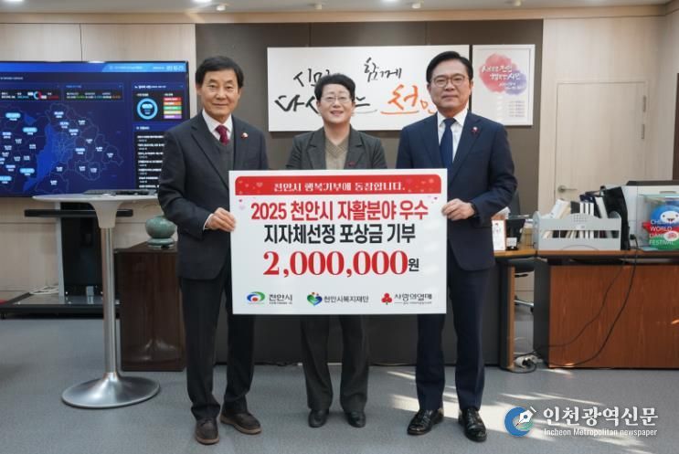 [인천광역신문] 박진 기자 | 천안시는 보건복지부 주관 ‘2025년 자활 분야 우수지자체’ 선정 포상금 200만 원을 천안시복지재단에 기부했다고 14일 밝혔다.
