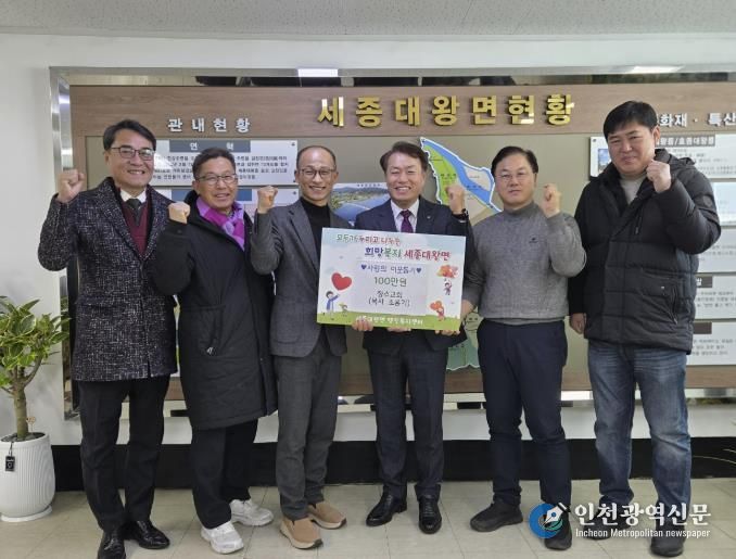 [인천광역신문] 박진 기자 | 지난 13일 세종대왕면 백석2리에 위치한 장수교회에서 관내 어려운 이웃을 위한 성금 100만원을 세종대왕면 지역사회보장협의체에 기탁했다.