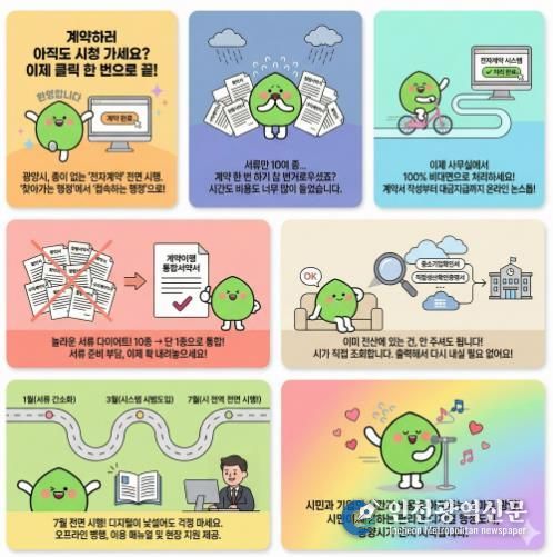 시는 올해 1월 계약서류 간소화 제도를 시작으로, 3월 본청을 대상으로 전자계약 시스템을 우선 도입한 데 이어, 오는 7월부터는 일선 읍·면·동까지 확대 적용할 계획이다.