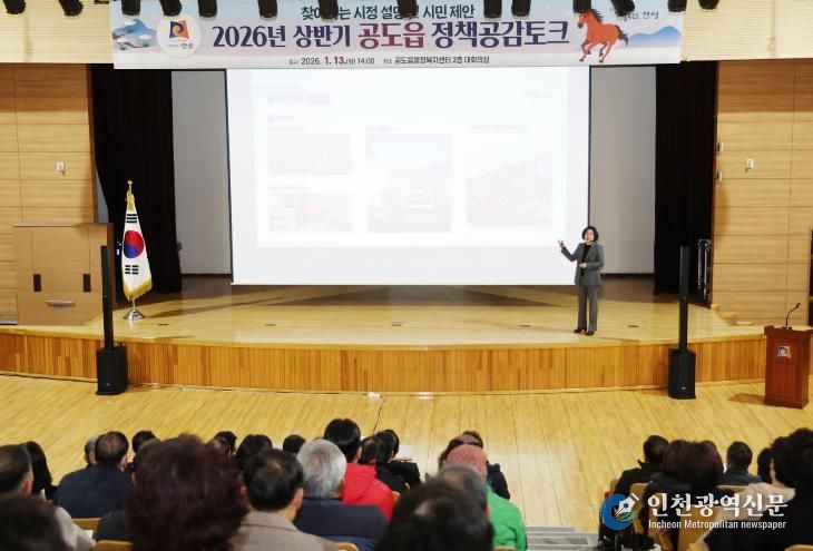 [인천광역신문] 박진 기자 | 2026년 상반기 공도읍 정책공감토크가 150여명의 시민이 참여한 가운데 지난 1월 13일 공도읍행정복지센터에서 개최됐다.
