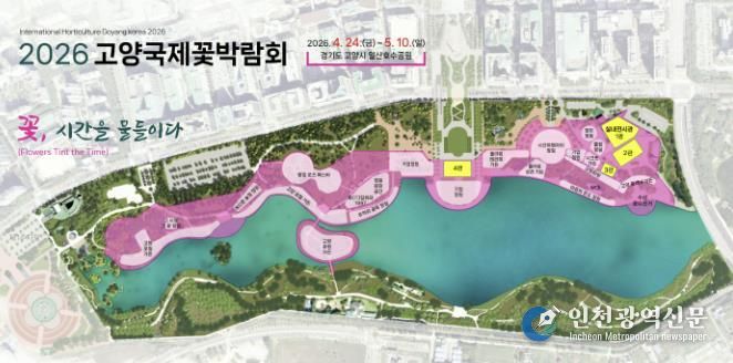 [인천광역신문] 박진 기자 | 올해 18회를 맞는 화훼 전문 국제박람회 ‘2026고양국제꽃박람회’가 개막 100일을 앞두고 윤곽을 나타냈다. 이번 박람회는 ‘꽃, 시간을 물들이다’를 주제로 4월 24일부터 5월 10일까지 17일간 일산호수공원 일원에서 열린다.