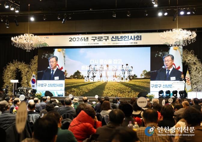 [인천광역신문] 박진 기자 | 구로구가 14일 오후 2시 신도림 테크노마트 그랜드볼룸에서 ‘2026년 구로구 신년인사회’를 성황리에 마쳤다.