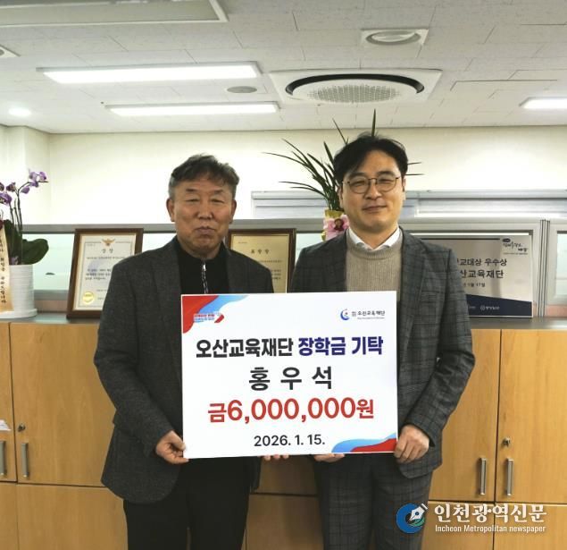 [인천광역신문] 박진 기자 | 오산교육재단은 지난 15일 ㈜드림앤트 홍우석 대표로부터 오산시 지역 인재 육성을 위한 장학금 600만 원을 기탁받았다고 밝혔다.