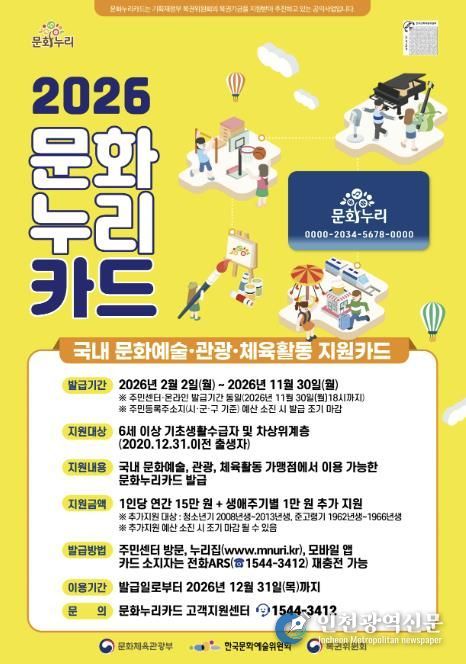 [인천광역신문] 박진 기자 | 영암군이 올해부터 최대 통합문화이용권을 16만원, 청년문화예술패스를 20만원으로 확대한다.