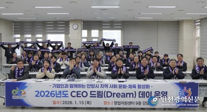 [인천광역신문] 박진 기자 | 안양산업진흥원은 15일 오후 3시30분 안양창업지원센터 강당에서 관내 기업인 150여 명을 대상으로 지역사회 문화·체육 활성화를 위한 ‘2026 CEO 드림(Dream) 데이’를 열었다.
