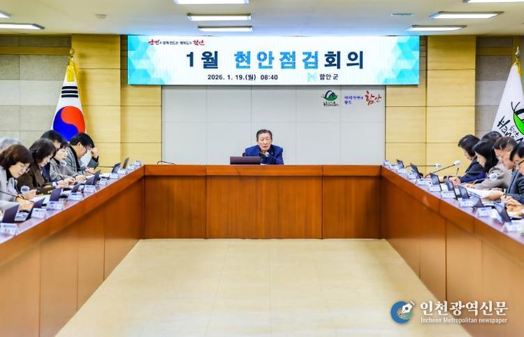 [인천광역신문] 박진 기자 | 함안군은 지난 19일 군청 3층 중회의실에서 1월 현안점검회의를 열고 도민 상생토크 준비 상황과 설 명절 공직기강 확립, 인사이동에 따른 업무연찬 강화, 산불 예방 대응체계 유지 등 주요 현안을 점검했다고 밝혔다.
