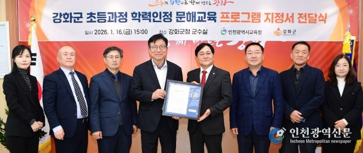 [인천광역신문] 박진 기자 | 인천광역시교육청은 강화군 내 저학력 성인의 기초학력 지원을 위해, 강화군청을 ‘초등 학력인정 문해교육 프로그램’ 운영기관으로 지정하고, 16일 지정서를 전달했다.