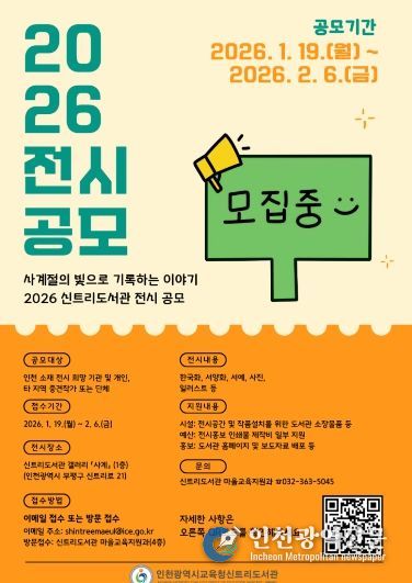 [인천광역신문] 박진 기자 | 인천광역시교육청신트리도서관(관장 정경애)은 지역 문화예술 활성화와 시민의 문화 향유 기회 확대를 위해 2026년 갤러리 ‘사계’ 전시 작품을 모집한다.