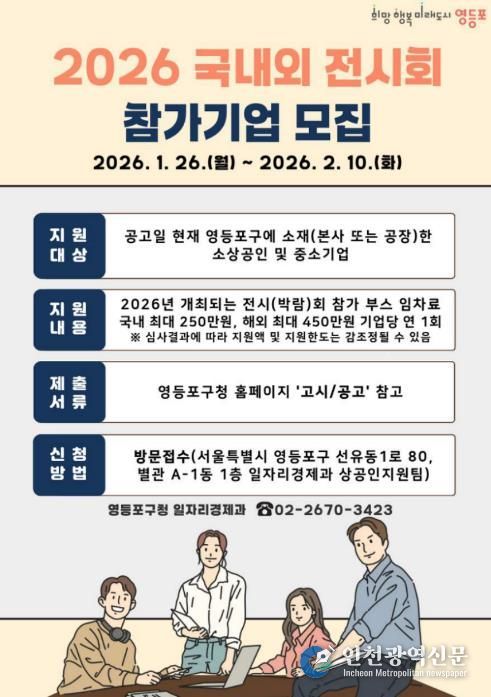 [인천광역신문] 박진 기자 | 영등포구가 경기 침체로 경영 부담이 가중되고 있는 관내 소상공인과 중소기업을 위해 자금 지원과 판로 개척을 동시에 지원한다고 밝혔다.