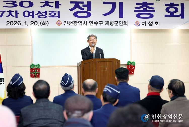 [인천광역신문] 박진 기자 | 인천광역시의회 정해권 의장(국·연수구1)은 20일 인천시 연수구 보훈회관에서 열린 ‘2026년 제30차 연수구 재향군인회 및 제27차 연수구 재향군인회 여성회 정기총회’에 참석해 회원들을 격려했다.