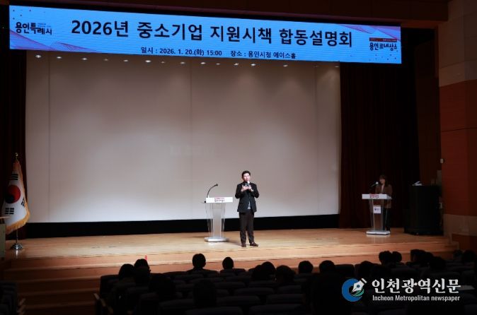 [인천광역신문] 박진 기자 | 용인특례시는 20일 시청 에이스홀에서 지역 내 중소기업 지원 정책을 설명하는 ‘2026년 중소기업 지원시책 합동설명회’를 열었다.