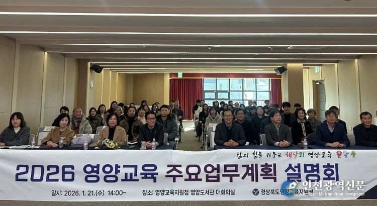 [인천광역신문] 박진 기자 | 경상북도영양교육지원청은 2026년 1월 21일 신축 경상북도교육청 영양도서관 대회의실에서 ‘삶의 힘을 키우는 해달뫼 영양교육’실현을 위한 '2026 영양교육 주요업무계획 설명회'를 개최했다.