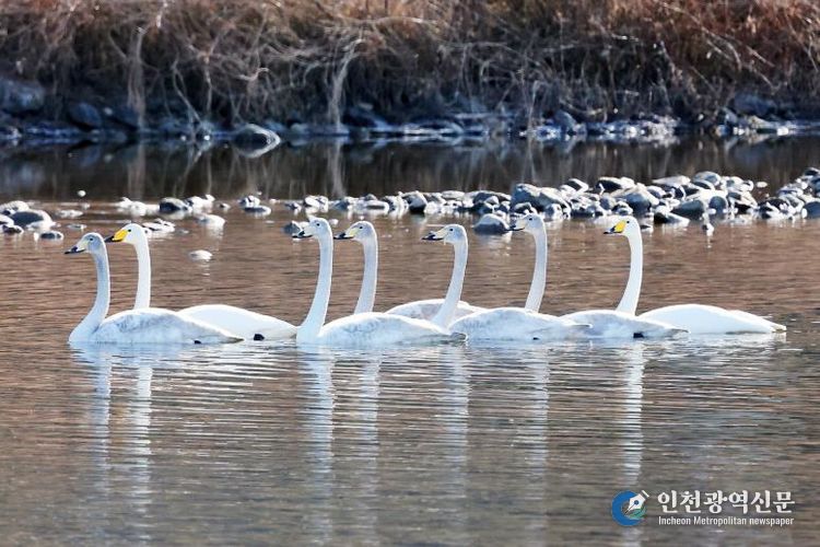 [인천광역신문] 박진 기자 | 충북 괴산 달천강에 내려앉은 ‘겨울 진객’… 큰고니 가족의 평화로운 외출청정 괴산의 생태 지표로 주목영하권 추위가 몰아친 충북 괴산군 달천강변에 반가운 손님이 찾아왔다.